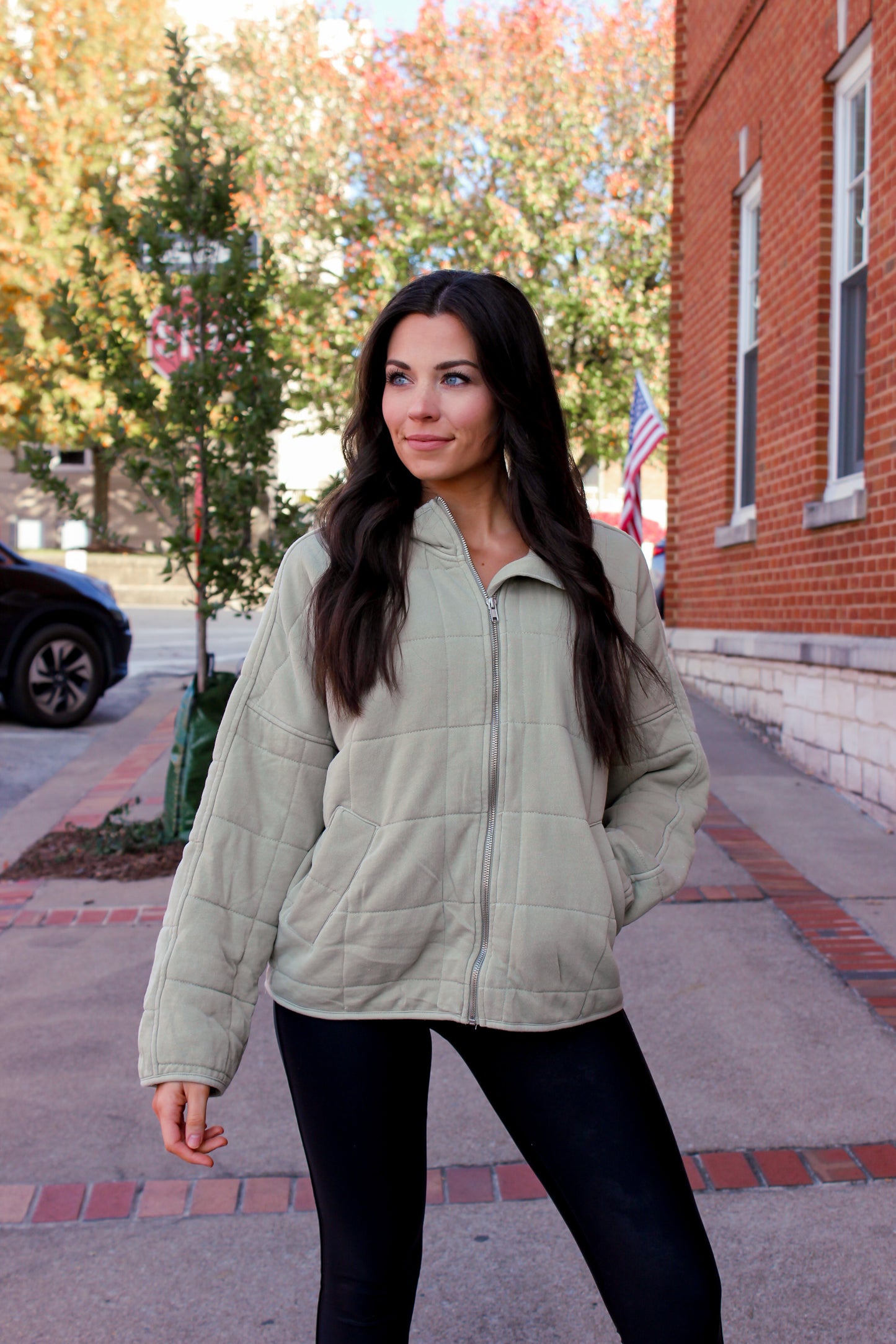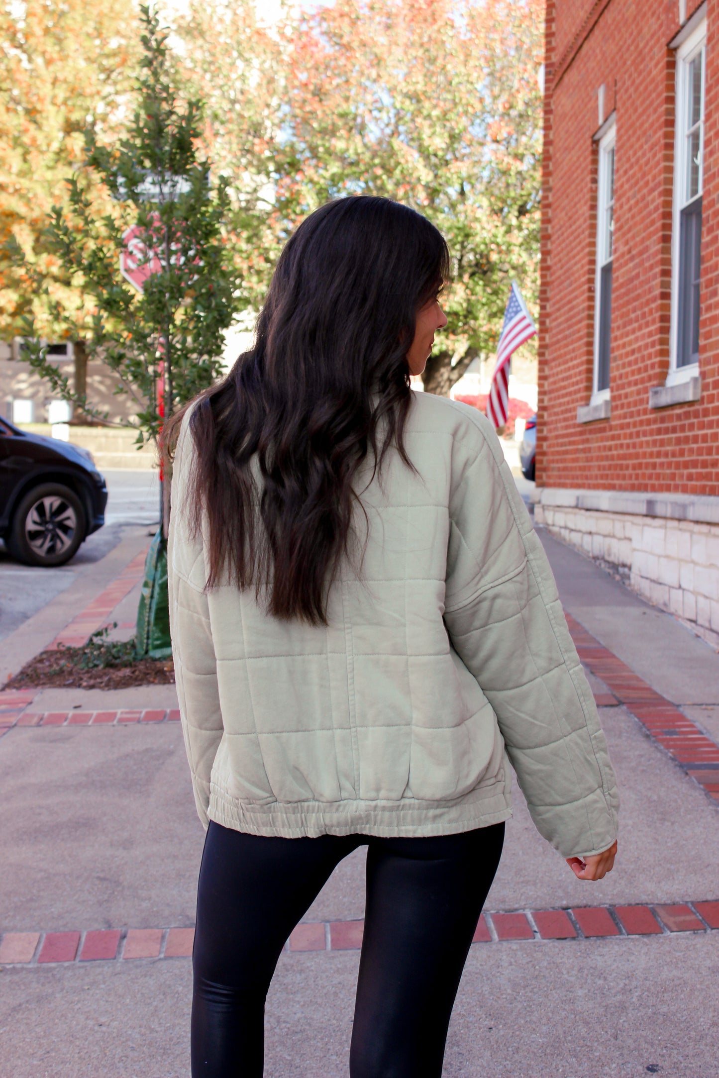 This Quinn Quilted Jacket in Olive is the perfect addition to your wardrobe. Its lightweight design and stunning olive green color make it perfect for any season. With side pockets and quilting for extra warmth, you'll always look stylish.