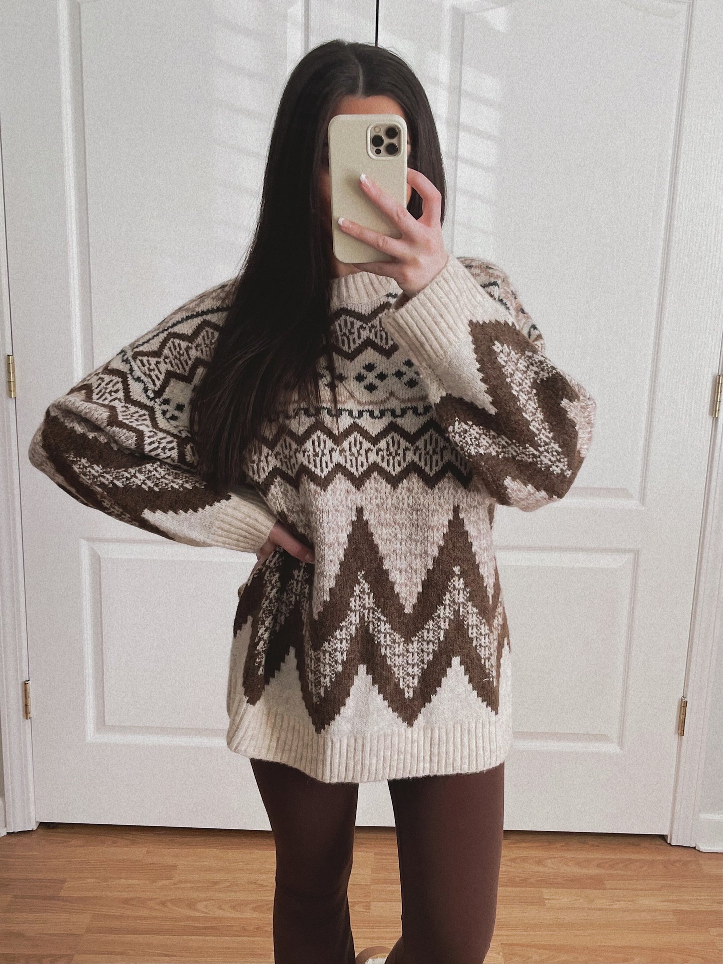 Introducing the Parker Crewneck Sweater! The perfect combination of style and comfort. The classic fair isle print adds a touch of retro vibes to your wardrobe, you'll never want to take it off! Experience the ultimate level of comfort with this must-have sweater.