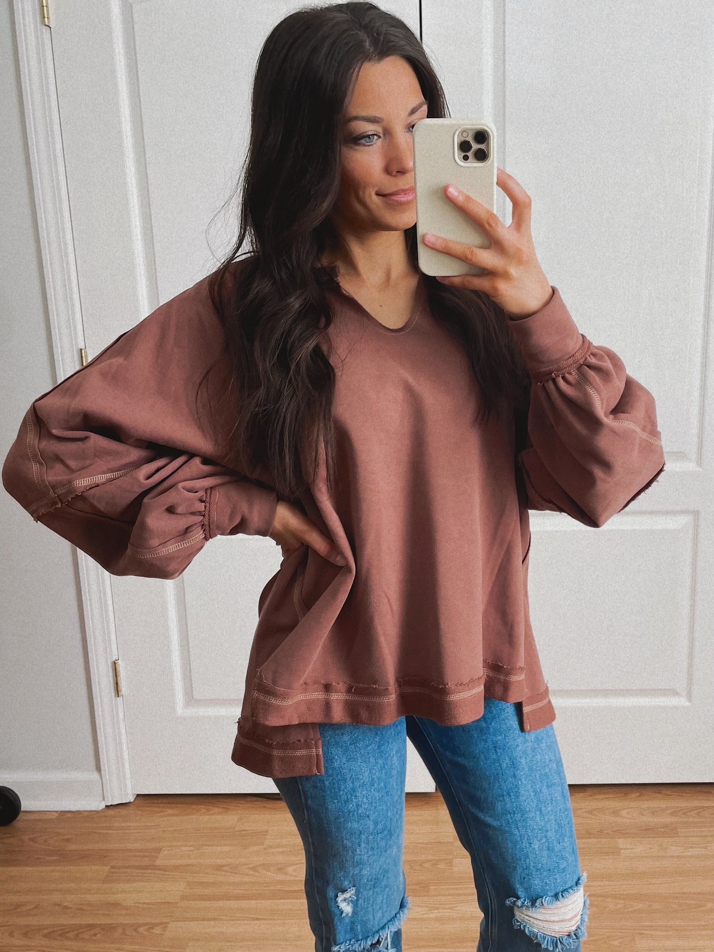 Indulge in the luxurious comfort of the Logan Dolman Pullover. This slightly oversized fit and dolman style provide ultimate comfort, while the raw edge stitch detailing adds a touch of uniqueness. Perfect for any casual setting, this pullover will keep you feeling confident and relaxed.