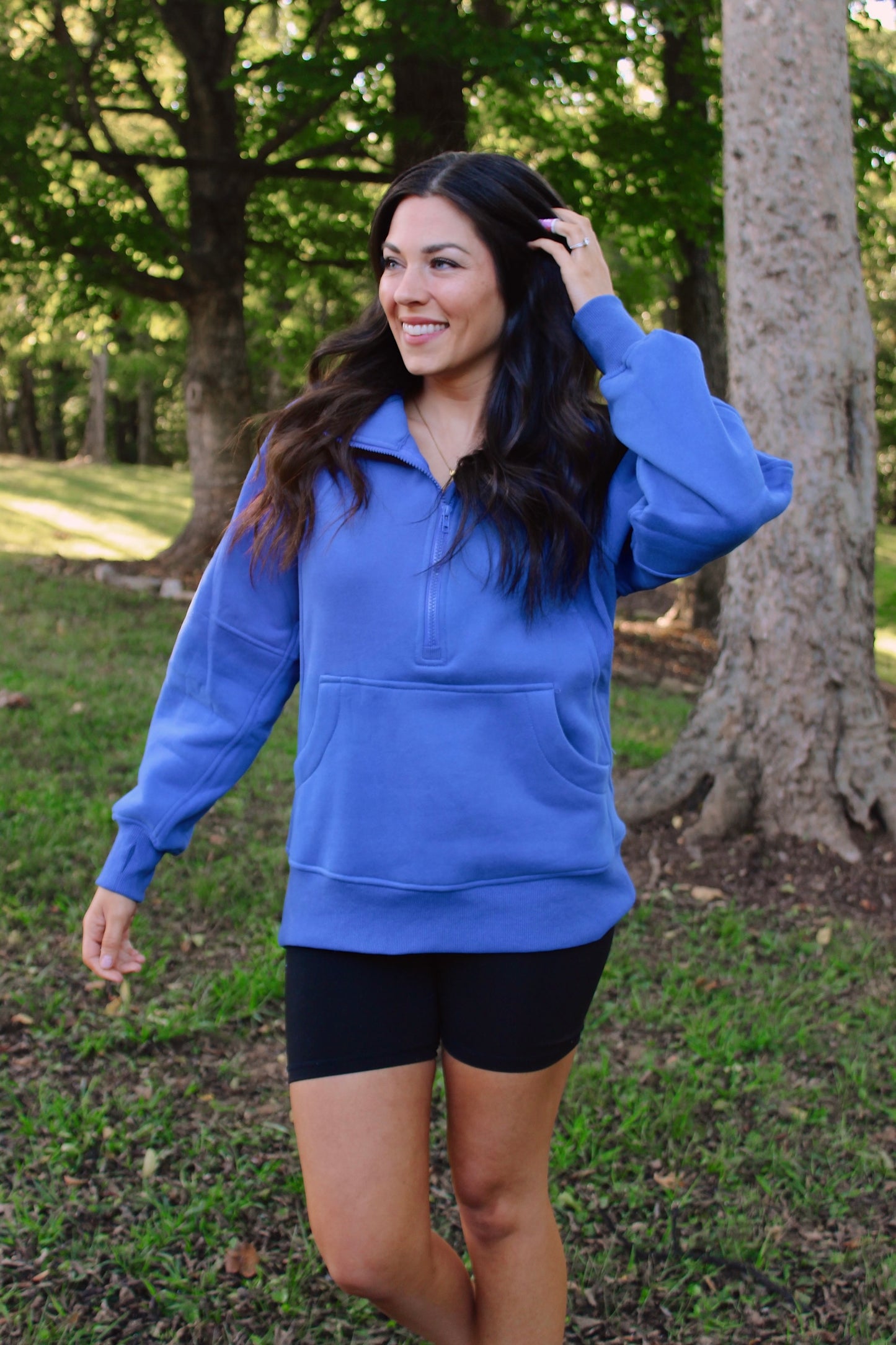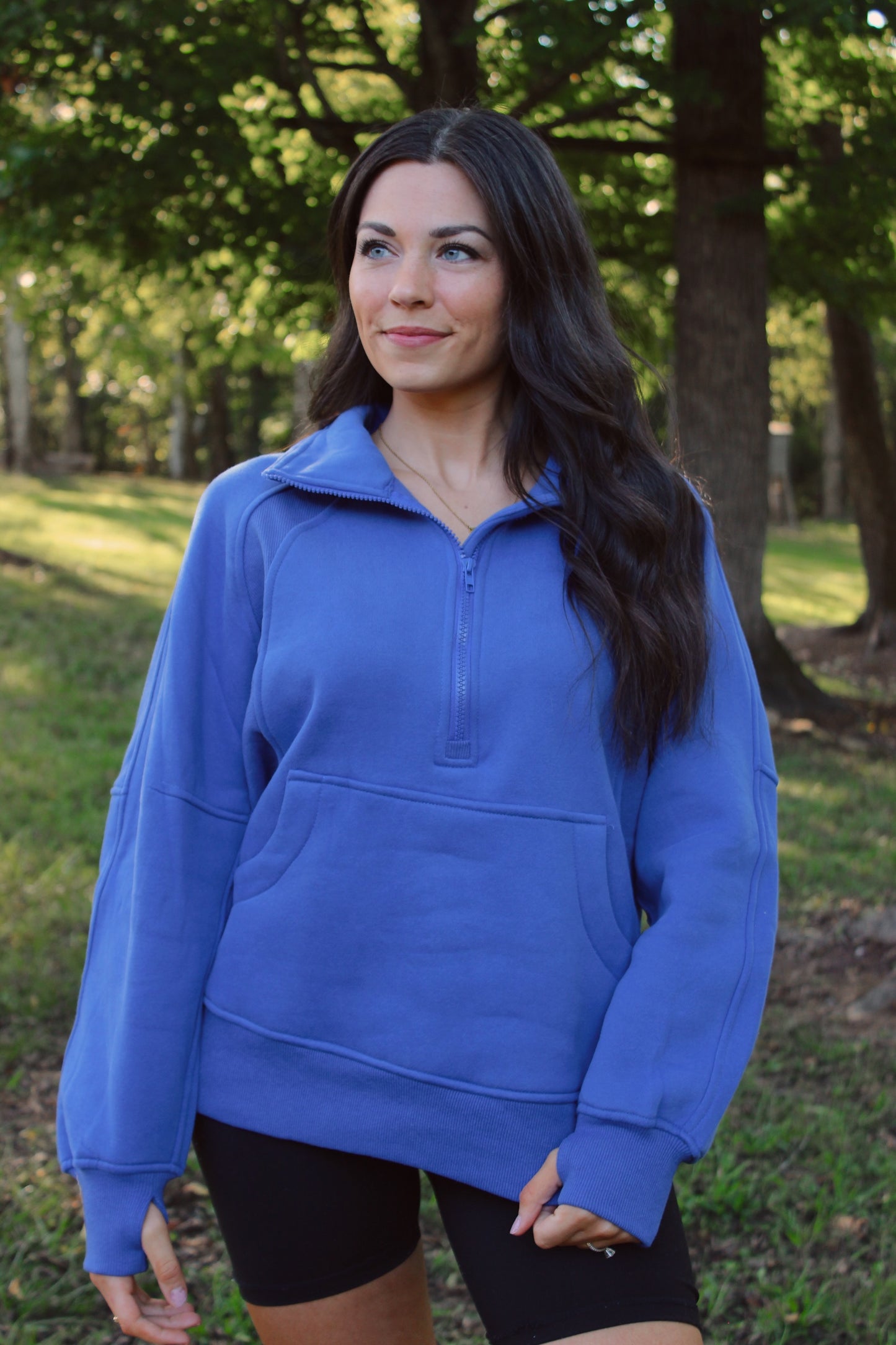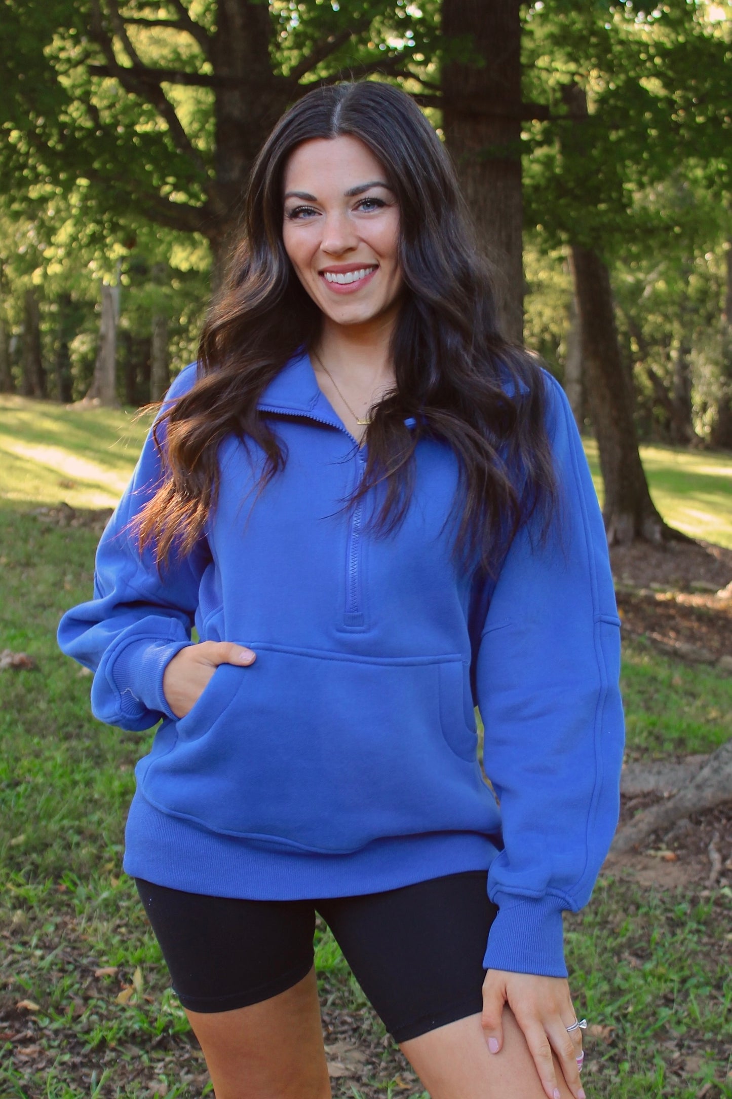 Stay cozy and stylish with our Quarter Zip Pocketed Pullover in Cobalt. This versatile piece features an oversized fit and longer length for ultimate comfort and style. Made with breathable, soft fabric, it's perfect for all-day wear. Don't sacrifice style for comfort - have both with the Quarter Zip Pocketed Pullover.