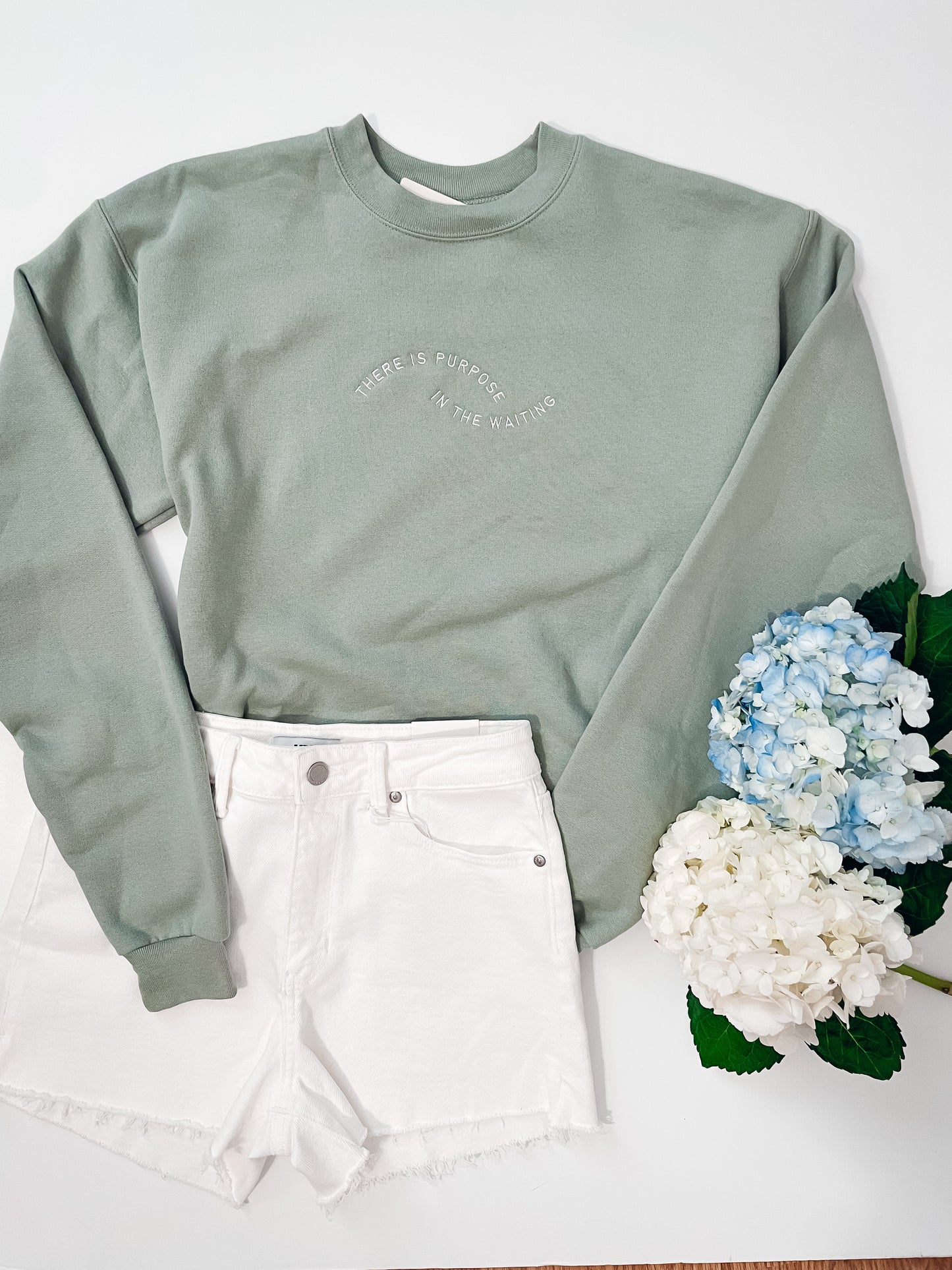There Is Purpose in the Waiting Sweatshirt -Sage